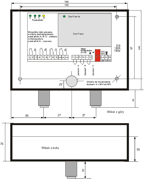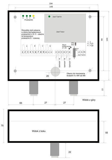 Układ przełącza po podłączeniu czujników z zewnątrz, a nie działa na transformatorze: sprawdzić prawidłowość podłączeń czujników i ich rezystancję.